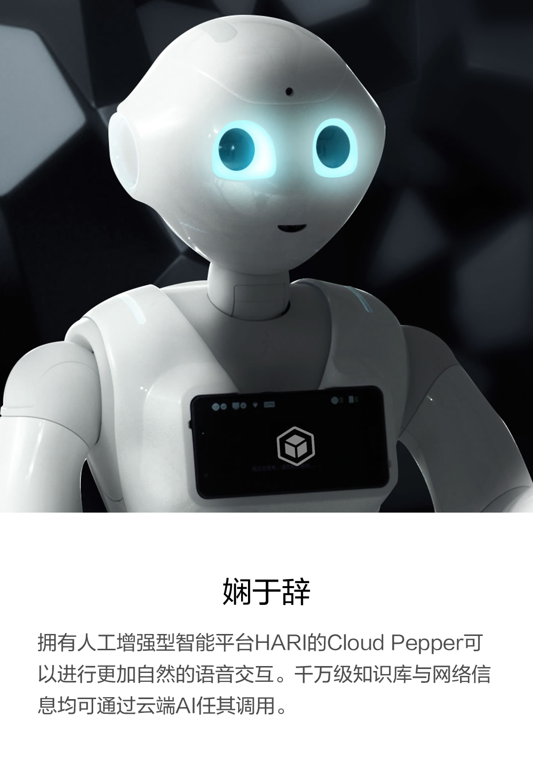 拥有人工增强型智能平台HARIX的Cloud Pepper可以进行更加自然的语音交互。
